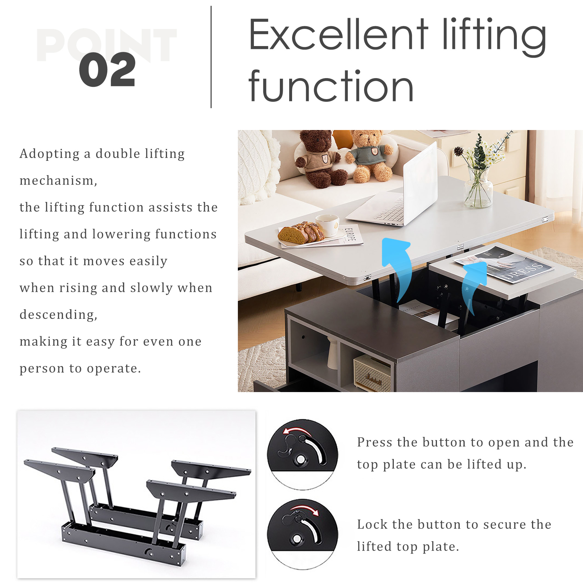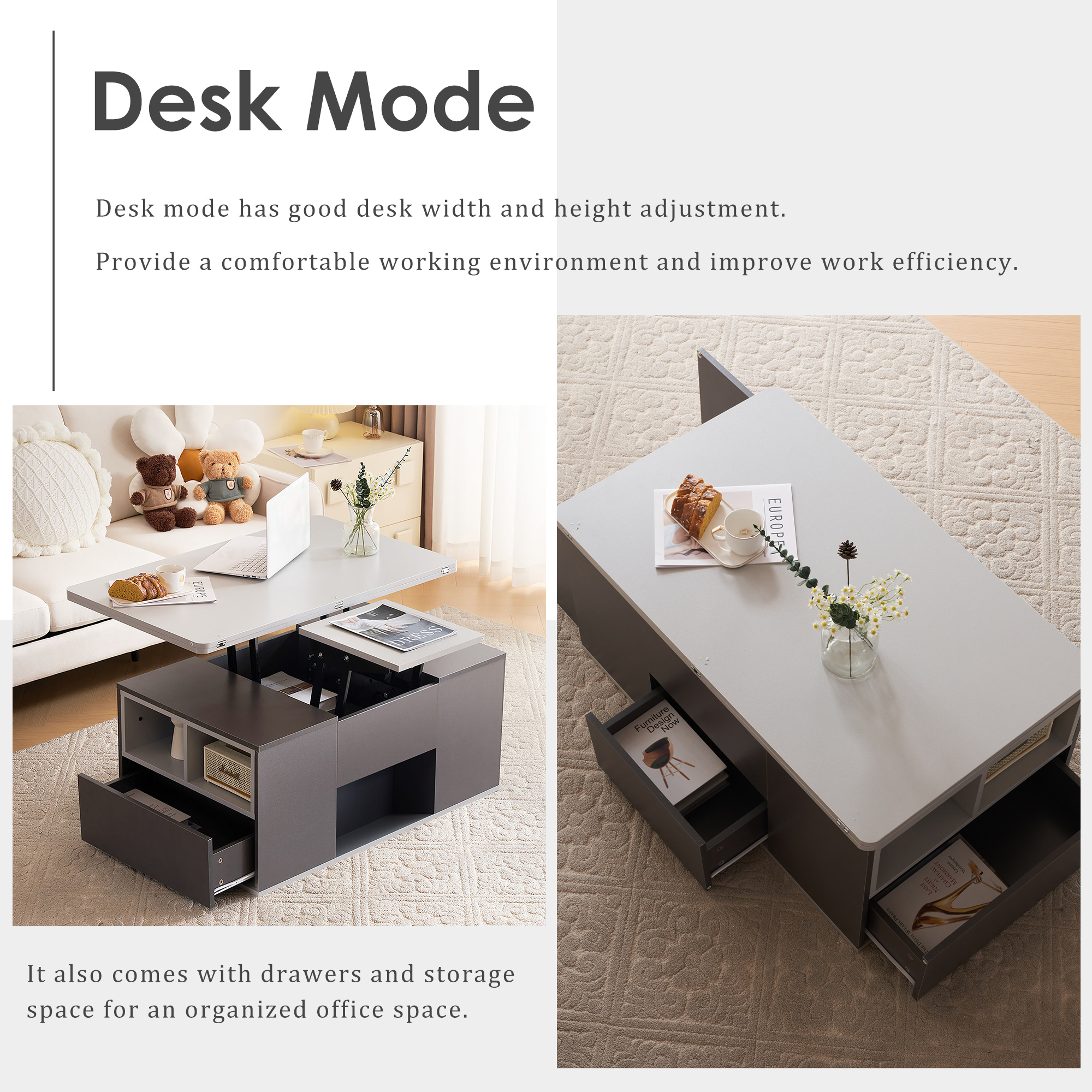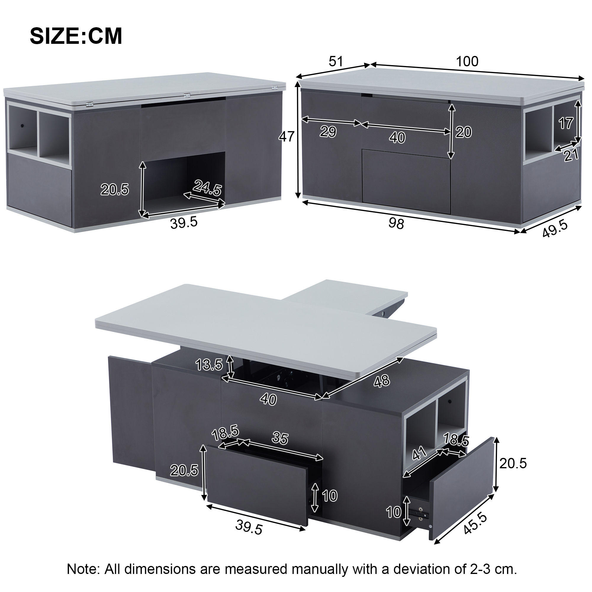 Product Name:Grey Coffee Table With Storage, Lift Up Coffee Table For Living Room, Coffee Table With 2 Drawers Lift-Top Sofa End Tea Tables for Living Room Furniture, 100*51*47cm, grey